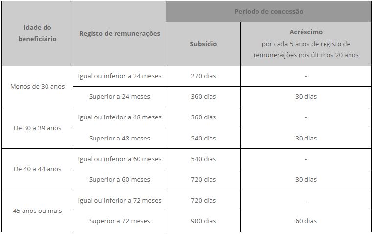 terminar o período de concessão das prestações de desemprego (conforme tabela acima);